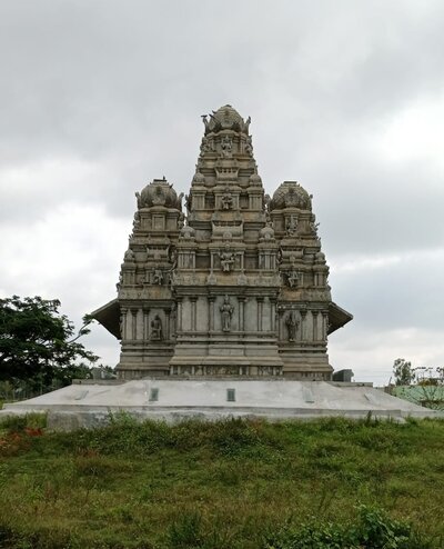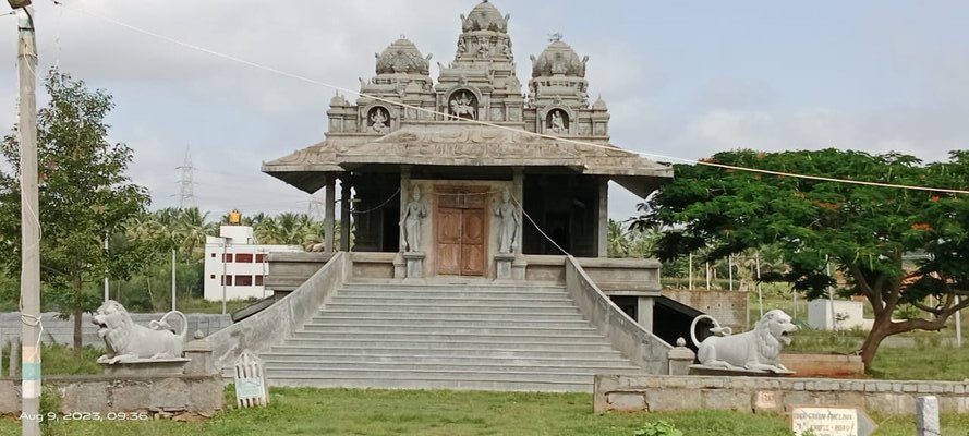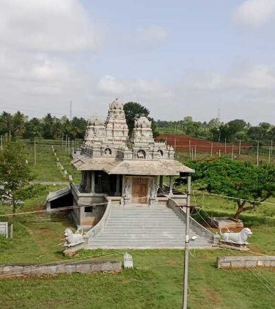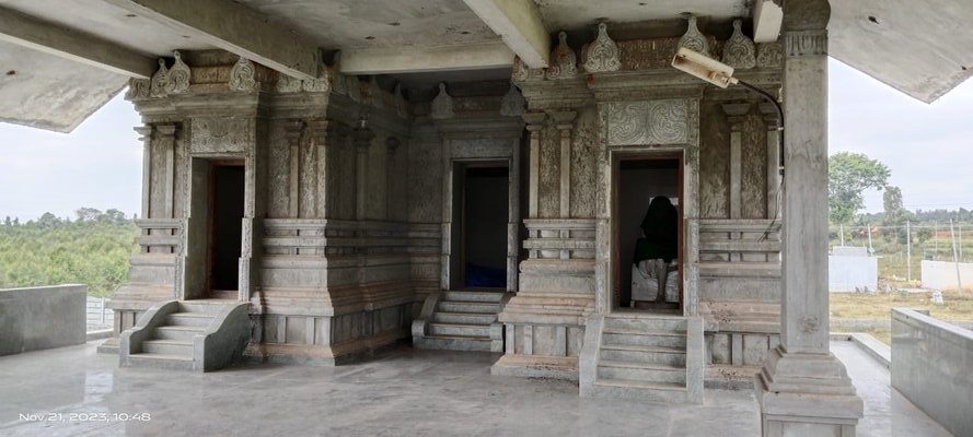 Constructing a temple at a divine site where celestial signs guided the owner to build for public welfare, with ongoing divine manifestations aimed at bringing peace of mind and resolving devotees' life problems.